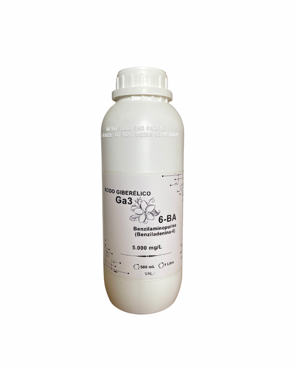 O Mix GA3 + 6-BA Benziladenina é um regulador de crescimento vegetal de alta performance, amplamente utilizado para estimular o crescimento, alongamento celular e melhoria da qualidade dos frutos, sendo uma alternativa eficiente aos produtos comerciais como Promalina e Maxcel.